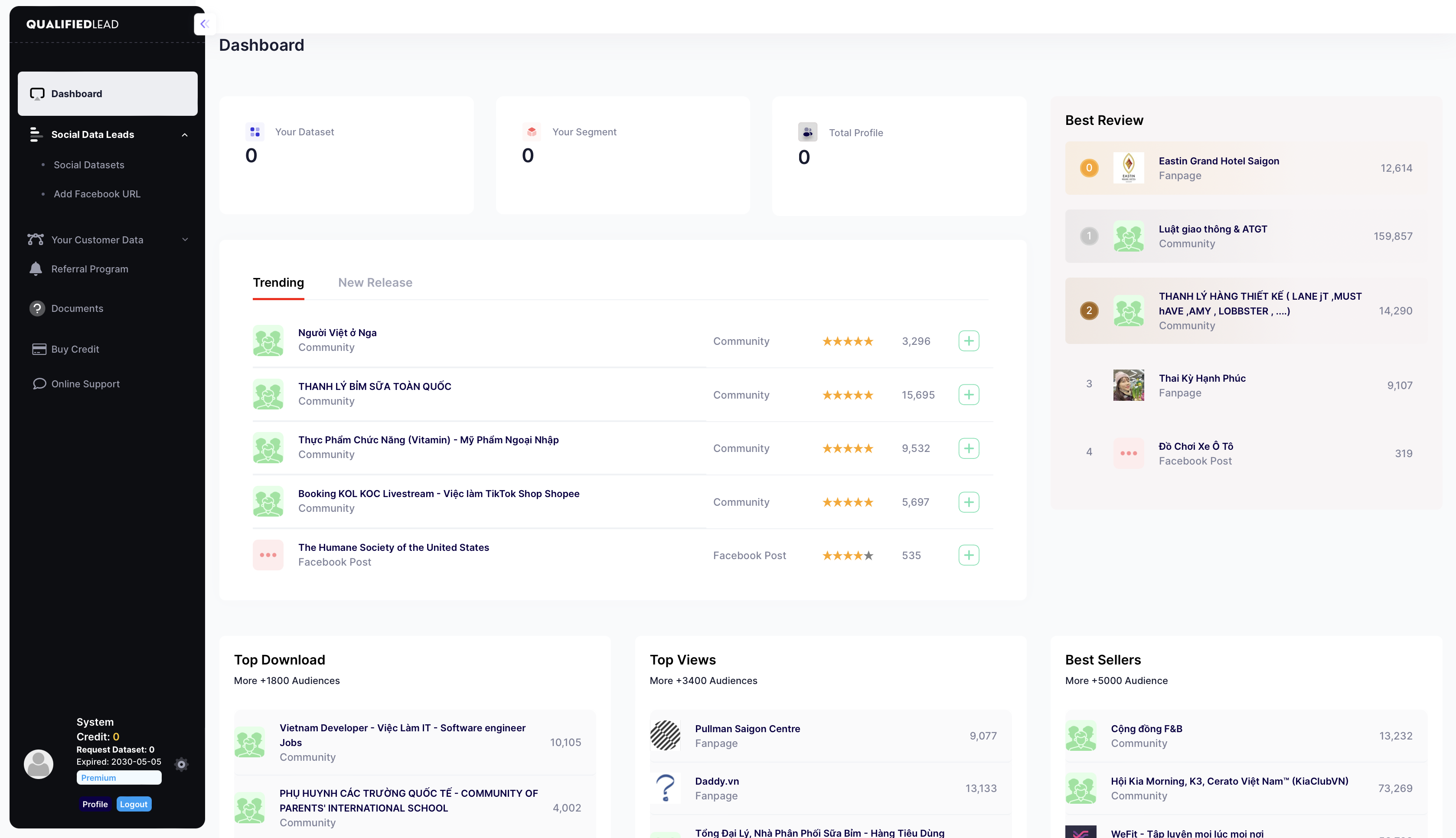 **Qualified Lead - Social Segmentation Platform by AI:** Platform that allows you to search for and build thousands of segments from user behavior to apply to marketing campaigns.